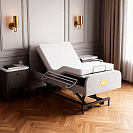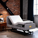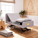 Кровать имеет дополнительные опции: ночную подсветку для безопасности в тёмное время суток, беспроводной пульт управления и функцию запоминания положений, что позволяет легко настроить оптимальный режим.